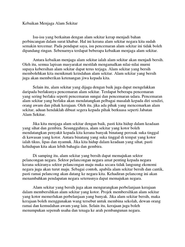 Antara kebaikan menjaga alam sekitar ialah alam sekitar akan menjadi bersih. Contoh Karangan Tahun 5 Pdf from imgv2-2. Kita semua sedia maklum bahawa alam sekitar seperti.
